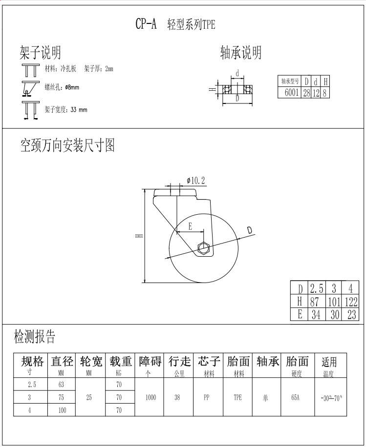 輕型腳輪-CP-A4-2551空頸萬向TPE