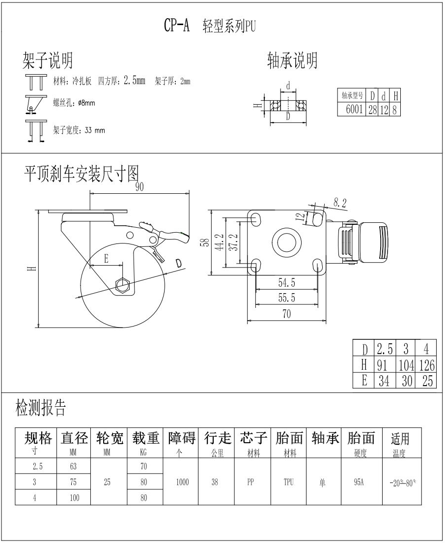 輕型腳輪-CP-A2.5-2531萬向剎車PU